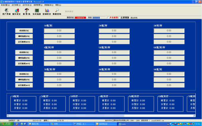 2、配料系統(tǒng)自動控制畫面 ①、操作系統(tǒng)具備自動生成班報、日報、月報報表功能. ②、顯示的數(shù)據(jù)包括運行方式、瞬時流量、累計量、斷料報警(聲光報警)。